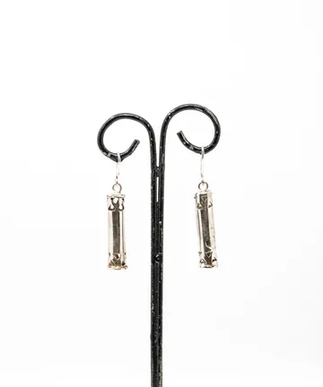 أقراط فضية بتصميم أسطواني مزخرف يدويًا